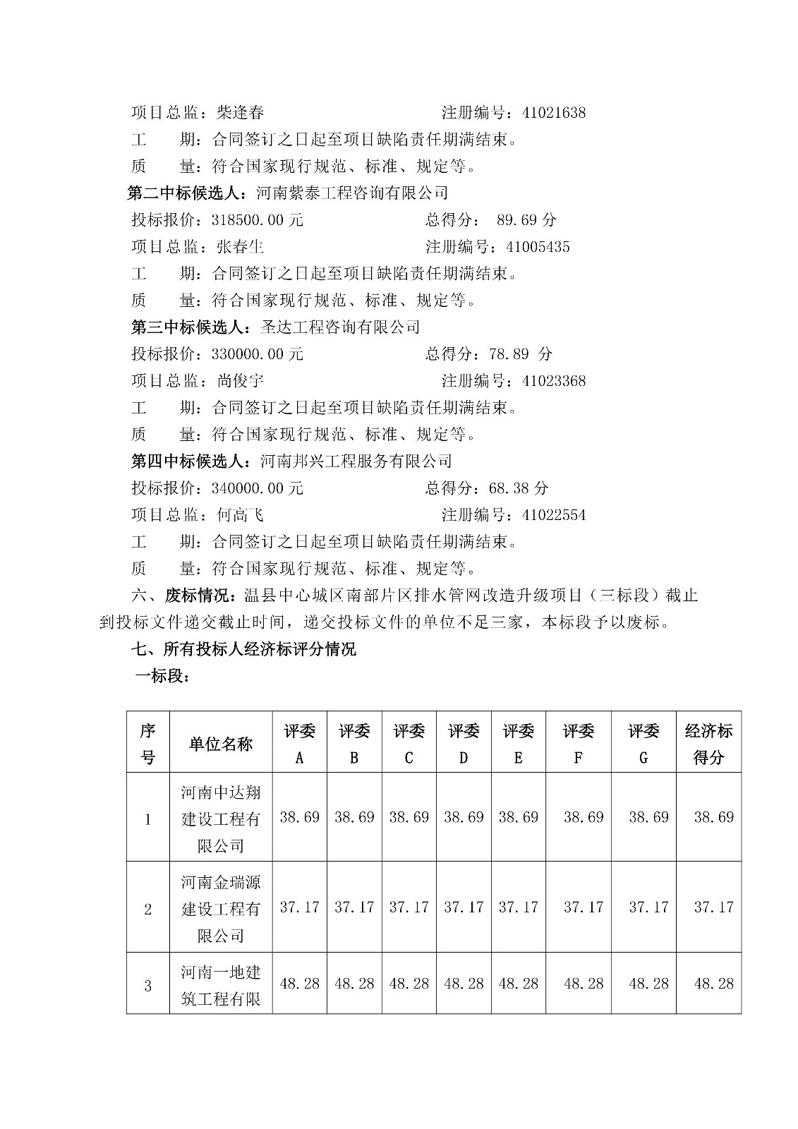 温县中心城区南部片区排水管网改造升级项目中标候选人公示