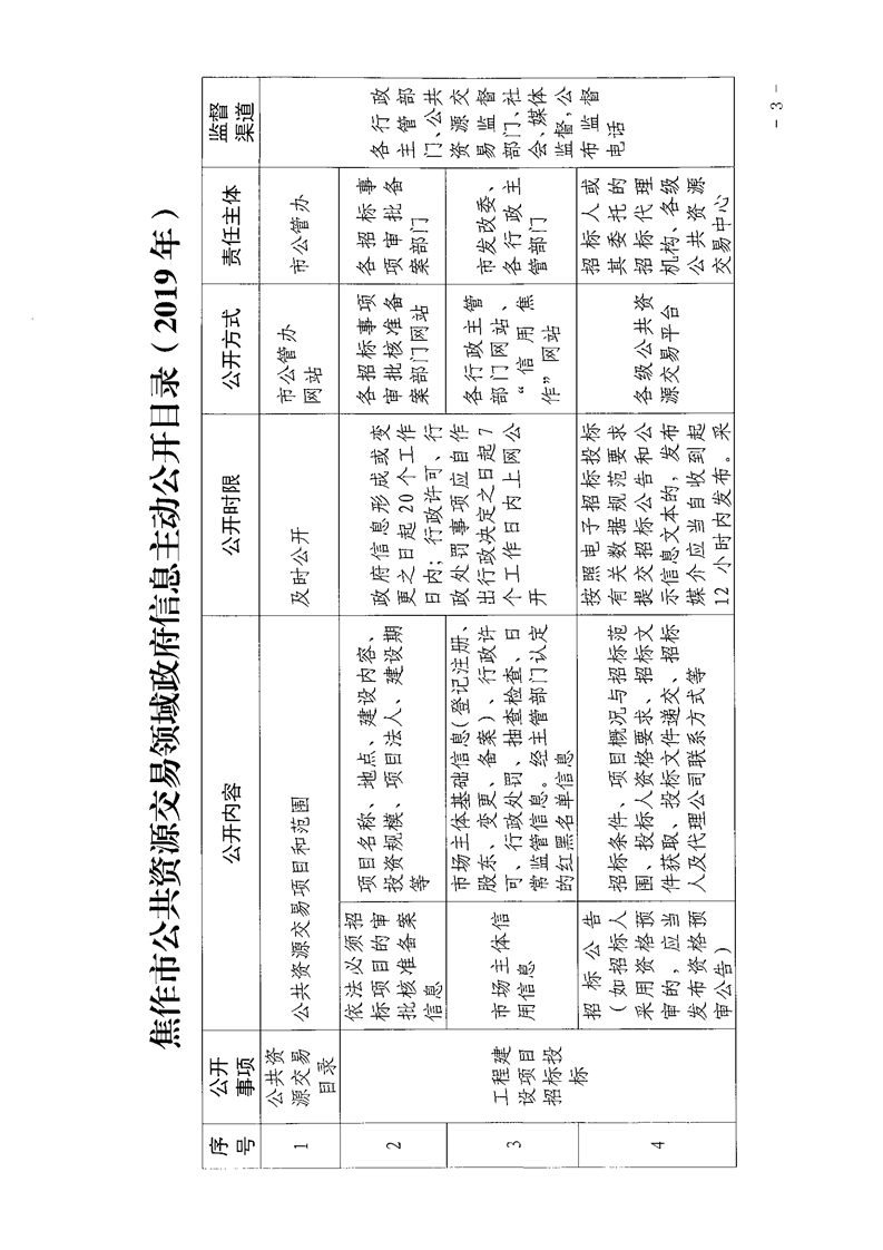 《焦作市公共资源交易领域基层政务公开标准目录(2019年本)》