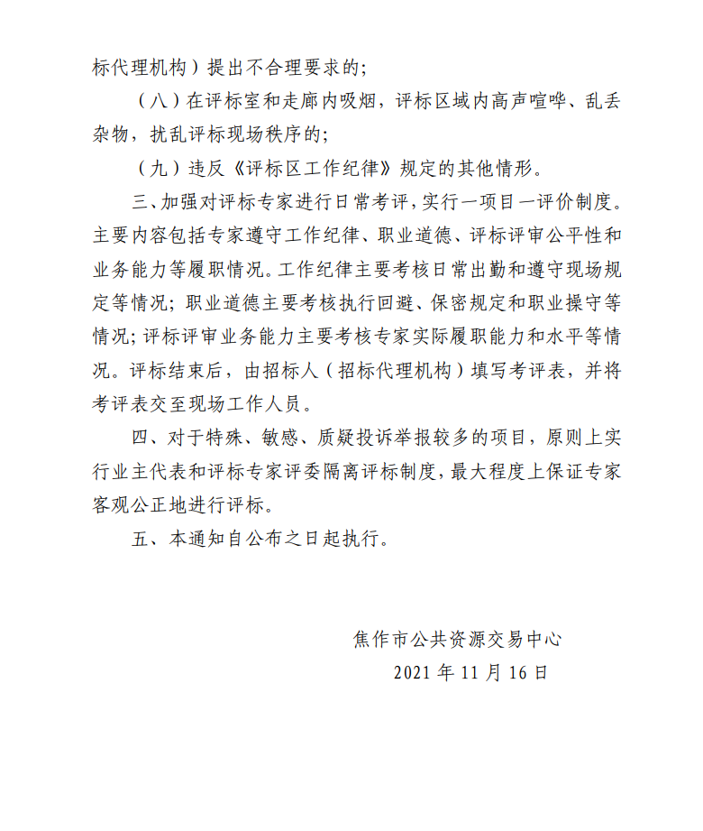 焦作市公共资源交易中心 关于进一步规范评标专家进场行为的通知