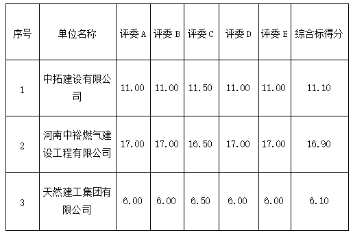 第一中标候选人:河南中裕燃气建设工程有限公司
