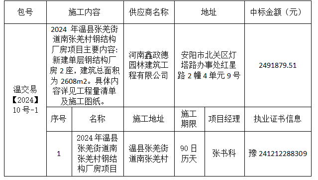 2、采购项目名称:2024年温县张羌街道南张羌村钢结构厂房项目