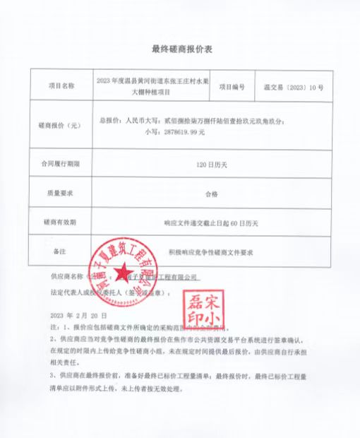 2023年度温县黄河街道东张王庄村水果大棚种植项目成交结果公告