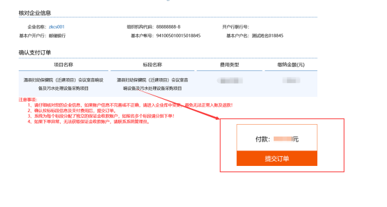 4、弹出核对企业信息界面,点击“提交订单”并确认企业信息,如下图所示: